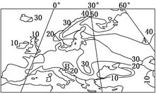 2、单选题 读欧洲固体降水占全年降水百分比图(%),完成问题。
