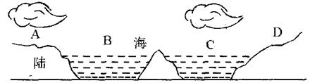 5、单选题 假设A、B、C、D在同一纬度,四地中昼夜温差最大的是 ( )