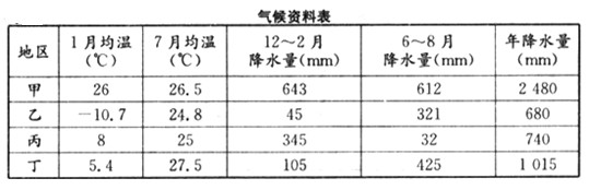 (3)图2ABCD四地气候中,与材科二丙地气候特征相似的是__________________________。该气候类型的一般分布规律是_________________________________________________________________________。
