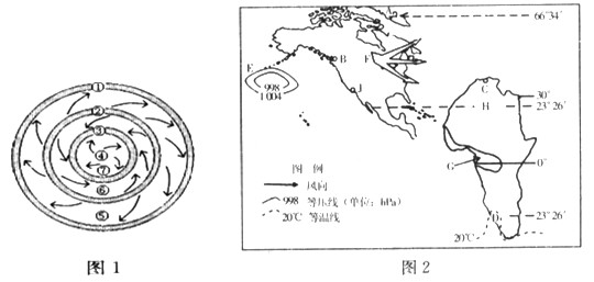 (1)图1表示的是________(南、北)半球的气压带、风带分布状况。