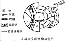 小题1:图中字母分别代表城市中的不同功能区。其中a区