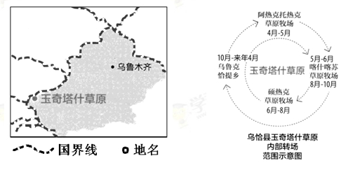小题3:从图中可知,玉奇塔什草原位于新疆西部,与中亚国家接壤,其紧邻的国家是吉尔吉斯斯坦。