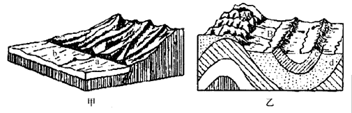 (1)按地质构造分,甲是__________,乙是__________。