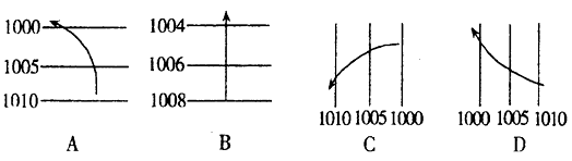 3、单选题 下图为四幅等压线图(单位:百帕),能正确反映北半球近地面风向的是( )