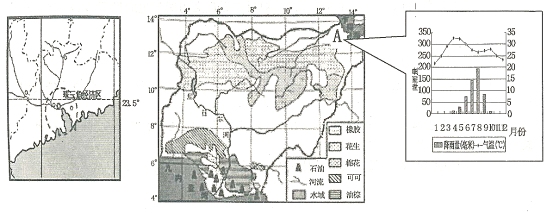 3、综合题 (24分)读广州省局部区域及尼日利亚农作物分布图,回答问题。