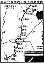 5、单选题 2008年12月26日,中线黄河北——羑河北工程(简称黄羑段工程)开工建设,标志着河南省南水北调黄河以北干线工程已进入全面实施阶段。读“南水北调中线干线工程路线图”,回答下列各题。