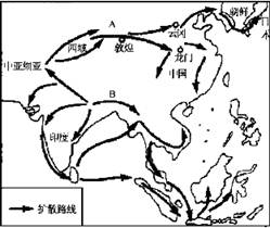 3、综合题 读“佛教扩散示意图”,回答下列问题