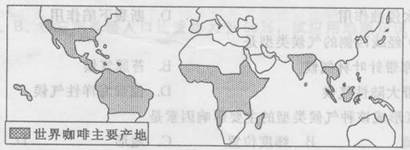 1、单选题 咖啡原产于埃塞俄比亚,18世纪20年代由荷兰人传到了拉美地区。读“世界咖啡主要产地分布图”,下列说法不正确的是
