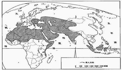 2、综合题 读中世纪穆斯林统治的地区图,回答12题: ?