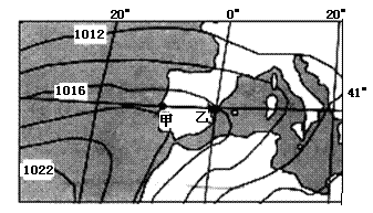 | 小题2:图示期间,下列叙述正确的是(?) A.地球位于公转轨道近日点附近 B.北极圈内极昼的范围逐渐扩大 C.海轮在北印度洋向西航行顺风顺流 D.中午在乙地时天气状况为晴热干燥