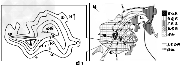 2、单选题 ?图1为“某城市局部城区道路网分布图”及“该城区某健身步道沿线等高线图”(城市健身步道是一种集文化、环保、人性于一体,兼顾交通的城市设施),读图回答1~3题。