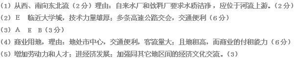 (2)如果该城市工业布局比较合理,BCDE四处中,___可能是高新技术产业开发区,判断理由是?(6分)