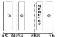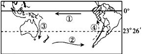 【小题1】图中②气压带或风带的气流运动方向和性质分别为 A.下沉 干燥 B.上升 湿润 C.由高纬流向低纬 干燥 D.由低纬流向高纬 湿润