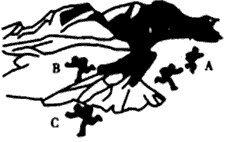 (1)如图中的A、B、C是泥石流自救中跑的方向,请判断其中哪些方向是对的?哪些方向是错的?