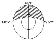 4、单选题 为某日某时刻某纬线圈至极点的昼夜分布状况,阴影为黑夜,该纬线圈的纬度可能是( )