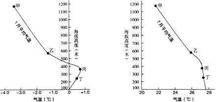 5、单选题  我国某山1月和7月平均气温垂直分布图,读图回答题。