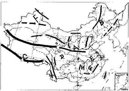 (4)(3分)我国南、北方的界山是?(填字母),以该山为界,南北方地区冬季气温相差很大,试分析原因。