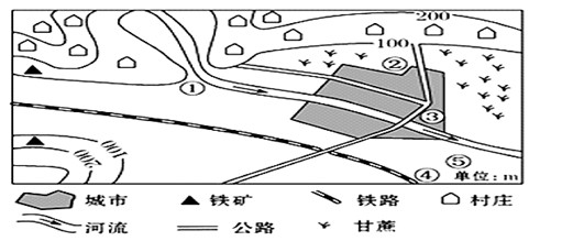 A.① B.② C.③ D.④ 2、综合题 下图是我国西南某地示意图,若考虑在①~⑤处兴建钢铁厂、制糖厂、电镀厂、服装厂和自来水厂,试指出最合适的地点和理由。