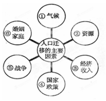 1、单选题  下图为影响人口迁移的主要因素示意图,读图完成下列各题。