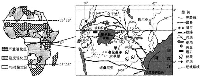 (3)试从人类活动的角度,结合东非高原局部示意图,分析P区域生态严重退化的主要原因。