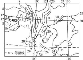 1、综合题  下图是我国某地区7月平均气温分布图,看图回答下列问题。