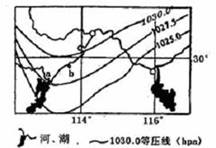 小题1:不考虑地形的影响,b地在未来30小时内风向、风力及气温的变化趋势,叙述正确的是