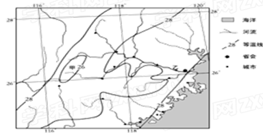小题1:本题考查影响气温分布的因素。根据图示该地位于我国东南沿海地区,甲地为武夷山地,海拔高,所以气温低。所以本题选择D选项。