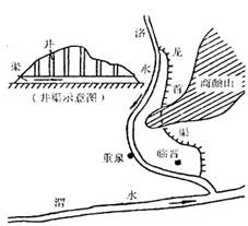 本题解析: 小题1:该地区位于我国黄土高原,结合图示引水渠道穿越山区,采用隧洞的形式可分段施工,减小工程量,且利于保持工程从高处向低处引水,可自流,而该地区位于我国半湿润地区,故减少蒸发和增加雨水补给不是主要目的,该工程的水源主要来自洛水上游。 小题2:结合渭河的地理位置判断,该山脉位于我国黄土高原地区,故千沟万壑的地貌形态是流水侵蚀的结果。 点评:本题有一定难度,学生往往把该工程按坎儿井的功能类推,而容易出现错误,解题关键是结合图示和当地的自然环境分析。