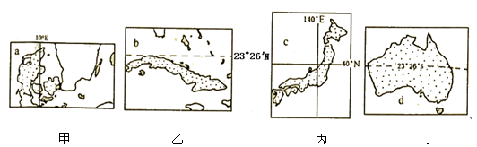 3、单选题 读甲、乙、丙、丁四个国家的示意图,完成问题