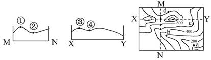 | 小题2:图中MN、XY的交点,在剖面图上对应的点是 A.①② B.②④ C.①④ D.②③