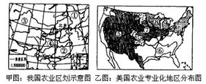 2、综合题 图为“美国农业专业化类型分布图”,读图完成下列问题。(6分)?