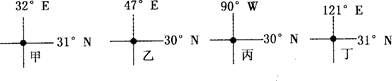 4、单选题 下图为30?N附近四条河流的河口位置图,回答(1)~(3)题。