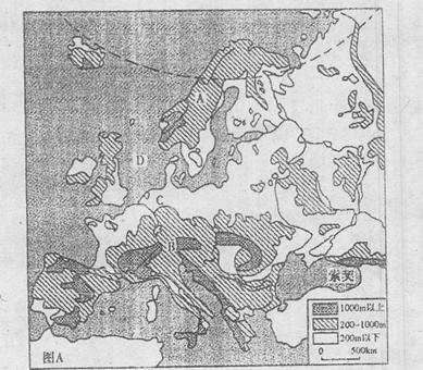 (1)读图A,根据图中信息,比较A、B两条山脉特征的差异。