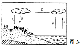 (4)目前我国正在进行的南水北调工程与哪一个环节关系最密切??(填字母)。