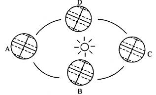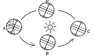 (2)结合上题的分析,可以判断图示时期北半球的节气,A代表夏至日、B代表秋分日、C代表冬至日、D代表春分日。?