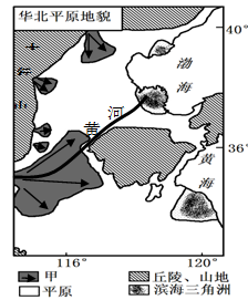 (1)指出图例甲的地貌类型,并说明其形成过程。(8分)