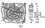 2、单选题 图3为我国某城市分布图。读图完成问题。