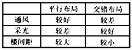 (3)该大型居住区楼房有平行布局、交错布局等,试对两种布局的住宅通风、采光、楼间距进行比较。
