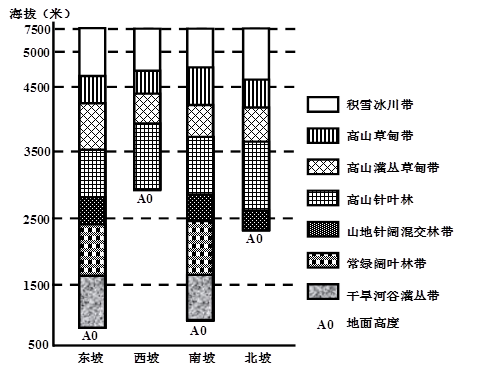 考点:本题主要考查山地垂直带谱的分布规律及其成因。