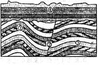 2、单选题  下图为“某地沉积岩层剖面图”,读图回答题。