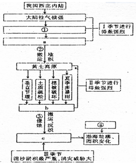 1.下列关于①~④的地质作用和a、b、c三处的地貌景观的组合,正确的是2.I 、Ⅱ、Ⅲ表示的季节是