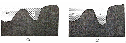 1、单选题  河流中下游地区的湖泊对河流径流有调节作用,河流或湖泊上游地区修建水库,对湖泊的水位有着重要的影响。下图①、②分别为水库修建前后湖泊的横截面示意图,读图回答下列问题。