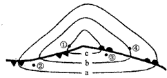 2、单选题 下图中a,b,c为海平面等压线。读图回答1—4题。