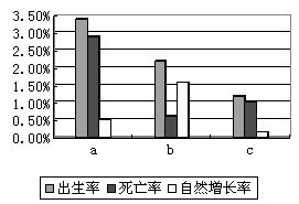 小题1:区域的人口再生产类型与我国部分地区吻合的一组是 A.a--西北内陆省区 B.c—少数民族集中地区 C.b--东部经济地带 D.b--边远农村