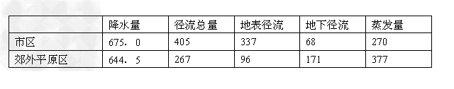 3、单选题 2011年夏季某城市连续遭受几次严重的城市内涝影响,阅读表格中的数据(单位mm),