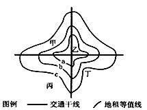 (1)根据图示资料,比较A、B、C三地地租高低,并说明判断依据(4分)