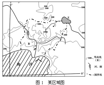 A地所在国人口1.4亿,森林覆盖率不到5%,2003年以来,该国与中国开展了在作物栽培、农田水利、水产养殖、畜牧养殖、农产品加工等多种领域的合作,这些合作项目受到了该国的高度重视。 (1)判断B地和Z湖流域的地形类型。 ___________________________________________________________________________________________ (2)描述N河下游的水文特征。 ___________________________________________________________________________________________ (3)说明A地所在国重视农田水利建设的自然原因。 ___________________________________________________________________________________________ (4)简述A地所在国发展农产品加工业的有利条件。 ___________________________________________________________________________________________