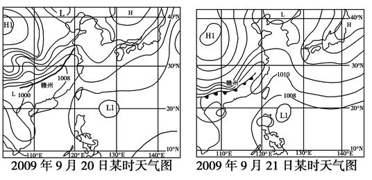 (1)分别说明20、21日赣州的天气状况并分析产生变化的原因。(4分)