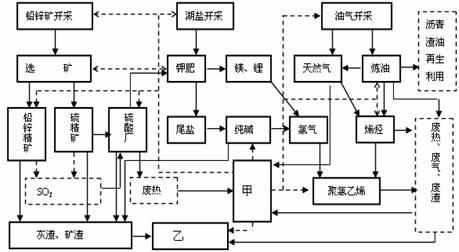 (1)读“柴达木部分循环经济产业链示意图”回答,图中甲、乙两处的是什么工业部门?说出该地产业链有哪些基本特征?(8分)