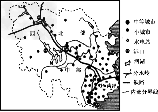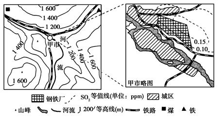 ①人口经济活动向城市集聚,城市化水平加速提高 ②城市数量增加,城镇规模扩大,出现城市群 ③第三产业成为区域经济的主导产业? ④东北部老城市开始出现人口回流 A.①③ B.②④ C.①③ D.②③ 3、综合题 下图为“甲市周边地区和甲市示意图”,该地区地处亚热带季风气候区,气候湿润多雾,河流湍急,矿产资源丰富。据此完成下列问题。(13分) 4、综合题 流域的开发对区域发展有重要意义,流域开发的成功与否直接影响到该地区经济发展的水平。下图为我国东南沿海地区某一条河流的流域示意图,读图回答下列问题。 ![]() ____________________________________________________________________________ (2)分析该流域城市的分布特点。 ____________________________________________________________________________ (3)该流域最突出的环境问题是__________,分析其对于地理环境的影响。 (4)说明该流域城市主要分布在东南部的原因。 ____________________________________________________________________________ 5、单选题 下图反映的是纽约市部分地区人口的昼夜分布情况,读图回答小题。 |